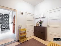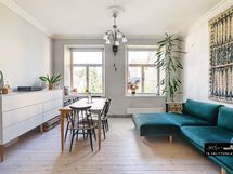 - Kaksi erillistä huoneistoa yhdistetty. Tarkistusmitatut (28.4.2015) huoneistoalat 53m2 + yläkerta 49m2. Yhtiöjärjestyksen ja isännöitsijäntodistuksen mukainen huoneistoala 48,5m2 + 50m2 = 98,5m2.