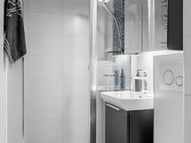 - Pesutilojen varusteet: WC-istuin, suihku, suihkuseinä, sadesuihku, pyyhekuivain., lattialämmitys, peilikaappi, pesuallas ja allaskaappi. Pesutilojen kuvaus: Remontoitu 2018.