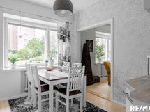 - Makuuhuoneesta puistoon ja keittiöstä sekä olohuoneesta taloyhtiön pihalle.