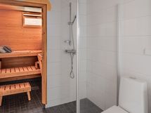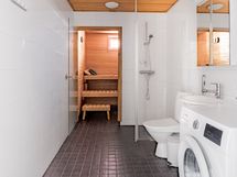 - Pesutilojen varusteet: WC-istuin, suihkuseinä, pesukoneliitäntä, lattialämmitys, peilikaappi ja suihku.
