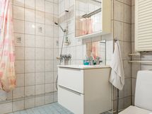 - Pesutilojen varusteet: WC-istuin, bidee-suihku, allaskaappi ja peilikaappi.
