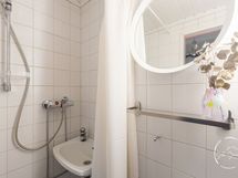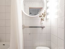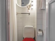 - Pesutilojen kuvaus: Pesutilassa suihku, suihkuverho, wc-istuin, käsienpesuallas, peili. Kylpyhuoneen laatoitus on uusittu vuonna 2017 vesieristeineen.