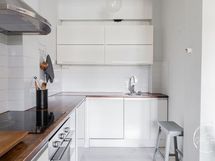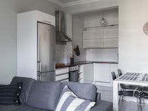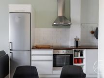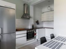- Tyylikäs avokeittiö, joka on uusittu runkoineen, kodinkoneineen ja väitilan laattoineen vuonna 2012.