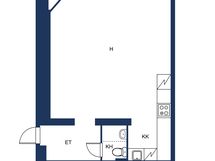 Varusteet: jää/pakastinkaappi, keraaminen liesi, liesikupu, astianpesukone. Paikka myös pyykinpesukoneelle. Lattia lakattu puulattia, seinät maalattu/ välitila kiveä.