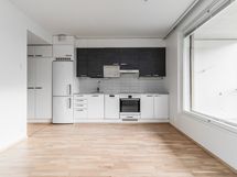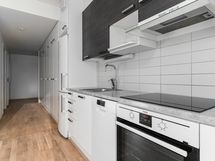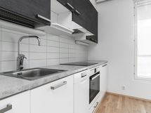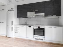 - Keittiön varusteet: Jääkaappipakastin, liesituuletin, astianpesukone, erillisuuni ja kiinteät valaisimet. Liesi: Keraaminen liesi ja erillisuuni. Työtason materiaali: Laminaatti.
