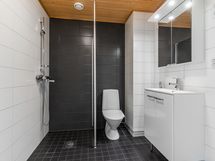 - Pesutilojen varusteet: WC-istuin, peilikaappi, suihkuseinä, pesukoneliitäntä, suihku ja kiinteät valaisimet.