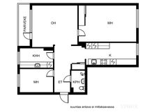 - Pinta-alan peruste: Isännöitsijäntodistuksen mukainen ja yhtiöjärjestyksen mukainen. Pinta-alaa ei ole tarkistusmitattu. Edellä mainittu pinta-ala saattaa tämän ikäisessä kohteessa poiketa olennaisestikin huoneiston nykyisten mittaustapojen ja standardien mukaan laskettavasta pinta-alasta. Huoneiston todellinen asuinpinta-ala voi siis olla esitteessä mainittua pienempi tai suurempi.