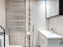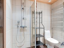 - Pesutilojen varusteet: WC-istuin, suihkuseinä, pesukoneliitäntä, bidee-suihku, allaskaappi, pesuallas ja peilikaappi. Pesutilojen kuvaus: Kylpyhuone remontoitu 2010.
