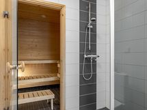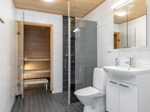 - Pesutilojen varusteet: Suihku, suihkuseinä, allaskaappi, peilikaappi, wc-istuin, bidee-suihku, pesukoneliitäntä ja lattialämmitys.