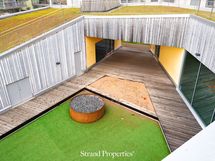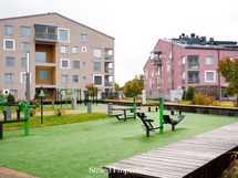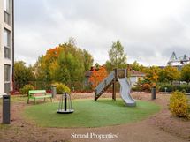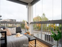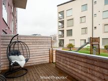 Terassi on pohjoisen/koillisen suuntaan ja sieltä on suora käynti pihakannelle, jossa huoneiston edessä mm. lasten leikkipaikka.