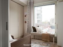 - Parveke ja olohuoneen suuri ikkuna on idän/kaakon suuntaan, josta näkymät on junaraiteille, Linnankadulle ja Aurajoen suuntaan.