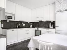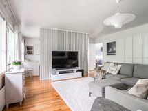 Kodissa on 128 neliömetriä harkittua toimivuutta. Eteinen on tilava ja siinä on sopivasti säilytystilaa. Asunnossa on keittiön ja olohuoneen lisäksi kolme makuuhuonetta ja takkahuone, joka on erotettu olohuoneesta tunnelmallisella valaistulla rimaseinällä. Tällä hetkellä takkahuone toimii ylimääräisenä työhuoneena, mutta se on helposti yhdistettävissä olohuoneen kanssa isoksi yhtenäiseksi tilaksi, johon saa esimerkiksi yhdistetyn olohuone-ruokailutilan. Keittiössä on reilusti kaappi- ja laskutilaa sekä paikka ruokapöydälle. Varusteluun kuuluu astianpesukone sekä kaksi jääkaappipakastinta. Kaksi wc:tä, käytännöllinen kodinhoitohuone sekä tilava kylpyhuone ammeella ja kahdella suihkulla sujuvoittavat arkea. Asunnon selkeä pohjaratkaisu ja rauhalliset pinnat tarjoavat kodikkaan tunnelman. Varaava takka tuo tunnelmallisuutta ja lämpöä talvella, ja ilmälämpöpumppu parantaa energiatehokkuutta ja tuo viileyttä kesäpäiviin. Kodissa on myös paljon säilytystilaa: useita kaapistoja, vaatehuone ja ulkovarasto.