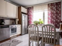 - Keittiön varusteet: Jääkaappi (korkea), erillinen pakastin (korkea (kapeampi)) ja liesi. Liesi: Keraaminen liesi ja keraaminen liesitaso. Työtason materiaali: Laminaatti. Vaaleat kaapistot, uusittu edellisten omistajien toimesta jossain vaiheessa.