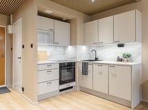 - Laminaattitasot, Astianpesukone, Integroidut koneet, Liesi tai uuni erikseen, Induktioliesi, Jää-pakastinkaappi