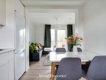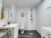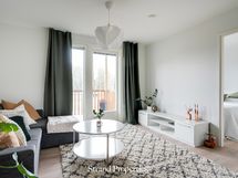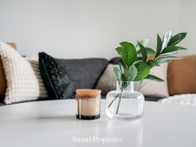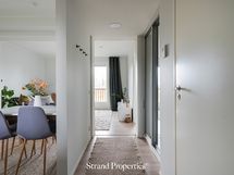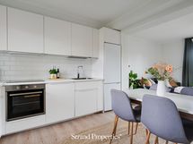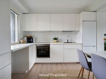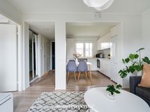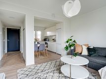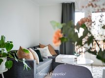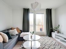 Viihtyisä olohuone muodostaa kutsuvan tilan rentoutumiselle, ja kesäisin yhteisen ajanvieton tilat laajenevat tilavalle parvekkeelle. Vaalea keittiö yhdistyy luontevasti osaksi olohuonetta. Keittiössä on runsaasti säilytys- ja työskentelytilaa, ja myös ruokapöytä löytää vaivatta paikkansa. Erillinen makuuhuone tuo mukavuutta arkeen, ja sen yhteydessä sijaitseva vaatehuone tarjoaa aina kaivattua säilytystilaa. Tilava kylpyhuone on käytännöllinen ja suunniteltu niin, että myös pyykkihuolto sujuu vaivattomasti.