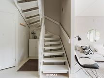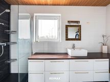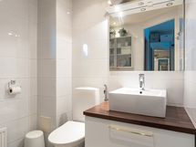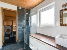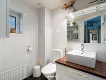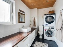 - Pesutilojen varusteet: WC-istuin, suihku, suihkuseinä, pesukoneliitäntä (sekä tila pesutornille), pesuallas, allaskaappi (laminaattityötasolla), peili (valolla) ja lattialämmitys (sähköinen). Pesutilojen kuvaus: Tilava kaunis v. 2007 remontoitu kylpyhuone, jossa paljon kaapistoa, työtasoa ja vaatteiden viikaustilaa sekä myös ikkuna. Allaskaapin ovet pinnoitettu kalvolla v. 2020. Erillisten WC:n lukumäärä: 1. Erillisen WC:n varusteet: WC-istuin, bidee-suihku, peili (LED-valoilla) ja allaskaappi. Erillisen WC:n kuvaus: Eteisen yhteydessä kaunis tilava WC- jonka katossa LED-valaistus. Allaskaapin ovet pinnoitettu uudelleen. Lämmitys patterilla (aikanaan ollut lattialämmitys, joka ei käytössä/ toiminnassa).