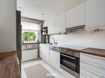 - Keittiön varusteet: Jenkkikaappi (Jääpalakoneella), erillisuuni, liesi, liesituuletin (huippuimurilla (IV säädetään tästä)) ja astianpesukone. Liesi: Induktioliesi. Työtason materiaali: Puu. Kaunis vaalea v. 2007 uusittu keittiö, jonka edustalla avoin ruokailutila. Katossa LED-valaistus. Maalattu tunnelmallisilla ja harmonisilla sävyillä. Ovet on pinnoitettu kalvolla ja vetimet uusittu v. 2019.