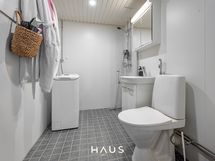 - Pesutilojen varusteet: WC-istuin, suihku, pesukoneliitäntä, peilikaappi, pesuallas, allaskaappi ja bidee-suihku. Pesutilojen kuvaus: Pesutilat uusittu linjasaneerauksessa.