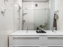 - Pesutilojen kuvaus: Remontoitu 2013. Käsienpesuallas X 2 kaapistolla. Erillinen tila pesutornille. . Varustus: suihkukaappi, pesukoneliitäntä, lattialämmitys, suihku, peilikaappi. Erillisen WC:n kuvaus: Remontoitu 2013. Varustus: bidee-suihku.