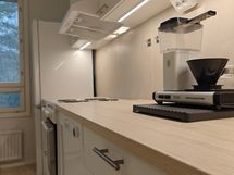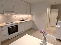 - Jää-pakastinkaappi, astianpesukone, sähköliesi + liesituuletin. Laminaattitasot, kaapistot.