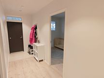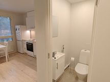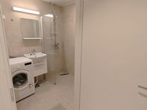 - Kylpyhuone: Suihku, suihkuseinä, pesukoneliitäntä, käsienpesuallas, allaskaappi, peili