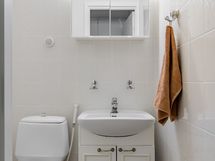 - Pesutilojen varusteet: Suihku, pesukoneliitäntä, peili, pesuallas ja suihkuseinä. Erillisten WC:n lukumäärä: 1. Erillisen WC:n varusteet: WC-istuin, peilikaappi, pesuallas, allaskaappi ja bidee-suihku.