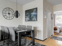 - Keittiön varusteet: Jääkaappipakastin, erillisuuni, liesi, liesituuletin ja astianpesukone. Liesi: Keraaminen liesi. Työtason materiaali: Laminaatti. 2021 uusittu, integroiduilla kodinkoneilla varusteltu keittiö.