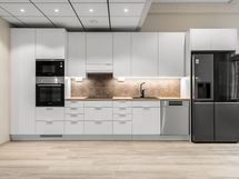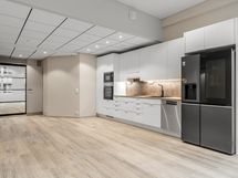 - Tilaa isolle ruokapöydälle, Paljon kaappitilaa, Paljon työskentelytilaa, Halogeenivalot, Suuri tiskipöytä, Laminaattitasot, Astianpesukone, Liesi tai uuni erikseen, Induktioliesi, Liesituuletin, Jenkkikaappi, jossa jääpalakone ja näkymä kaappiin ilman oven avausta hipaisukytkimellä, 10 vuoden kompressoritakuu ja 5 vuoden täystakuu.