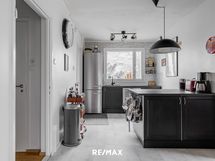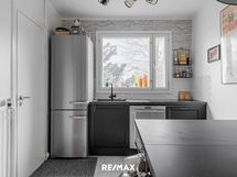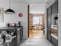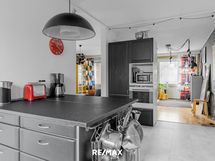 - Keittiön varusteet: Astianpesukone, keittiösaareke, liesi, jääkaappipakastin ja kiertoilmauuni. Liesi: Induktioliesi. Työtason materiaali: Laminaatti.