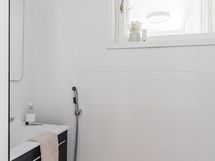Kylpyhuone laatoitettu, uudet sähköt, lattialämmitys, hanat, kaapistot ja vesiputket osittain uusittu.