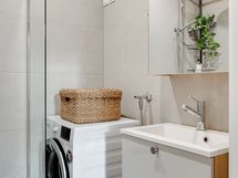 Vuonna 2022 peruskorjatussa yhtiössä on tehty kattavat kunnostukset, ja samalla kotiin on valittu laadukkaat ja ajattomat materiaalit. Tyylikäs ilme syntyy muun muassa Puustellin keittiöstä, tyylikkäistä laatoista ja kauniista kovapuulattiasta. Kodissa on myös hyvin säilytystilaa; vaatehuoneen lisäksi kaapistoja löytyy niin makuuhuoneesta kuin eteisestäkin. Lisäksi asuntoon kuuluu häkkivarasto naapuritalon kellarista.