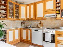 Liesi: sähköliesi. Kylmäsäilytys: jääkaappi/pakastin. Varustus: liesituuletin, astianpesukone.