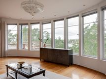 Sisääntulo avautuu näyttävästi meren suuntaan koko asunnon mitalta ja asuintilat ovatkin mukavasti ja avarasti yhdessä tasossa. Olohuoneeseen sijoitat vaivatta suuremmankin sohva- ja ruokailuryhmän.