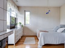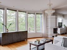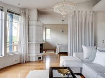 Olohuoneen toiseen päätyyn saat erotettua toisen makuuhuoneen oleskelutilasta esimerkiksi lasipariovilla.