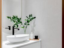 Kodin suunnittelusta on vastannut arkkitehti Vesa Arosuo, jonka kädenjälki näkyy ajattomassa muotokielessä ja harkituissa yksityiskohdissa. Laadukkaat materiaalit viimeistelevät kokonaisuuden: kovetettu puulattia, tammiovet, Corian-tasot keittiössä sekä Tapwellin hanat ovat tarkkaan harkittuja valintoja. Kylpyhuoneessa rimakatto ja seinä-wc korostavat huoliteltua ja modernia ilmettä.