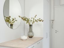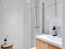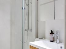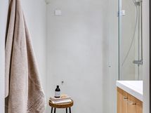 - Pesutilojen kuvaus: Tyylikäs kylpyhuone, jossa mikrosementtipinnoite. Kylpyhuoneen varustukseen sisältyy: suihku, lasinen suihkuovi, wc-istuin, peilikaappi ja allaskaapisto.