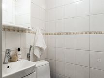 Seinät ja lattia laatoitettu, lattialämmitys, pesukoneliitäntä, suihku. Erillisen WC:n kuvaus: WC remontoitu v. 2007