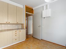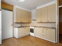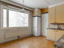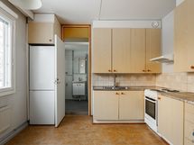 - Jääkaappi/pakastin (uusittu noin 2 vuotta sitten), sähköliesi ja valmius astianpesukoneelle. Lattia muovia ja seinät maalattu.