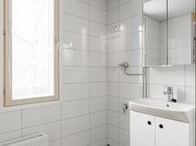 - Pesutilojen kuvaus: Kylpyhuone uusittu taloyhtiön putkiremontin yhteydessä vuonna 2025. Suihku, kääntyvät suihkuseinät, peili- ja allaskaappi, pesukoneliitäntä ja lattialämmitys. Lattia ja seinät laattaa. Erillisen WC:n kuvaus: 1 kpl. Erillinen wc uusittu taloyhtiön putkiremontin yhteydessä vuonna 2025. Seinämallinen wc-istuin, peili- ja allaskaappi sekä lattialämmitys. Lattia ja seinät laattaa.