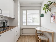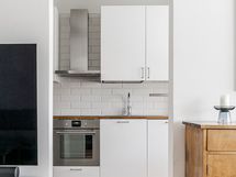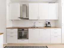 - Keittiön varusteet: Jääkaappipakastin, erillisuuni, mikroaaltouuni, astianpesukone, liesi ja liesituuletin. Liesi: Keraaminen liesi. Työtason materiaali: Puu. Remontoitu 2017.