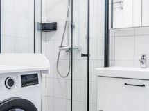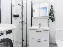 - Pesutilojen varusteet: WC-istuin, suihku, suihkuseinä, pesukoneliitäntä, lattialämmitys, peilikaappi, allaskaappi ja bidee-suihku. Pesutilojen kuvaus: Remontoitu 2017, suihkukulmauksen ovet asennettu kesällä 2021.
