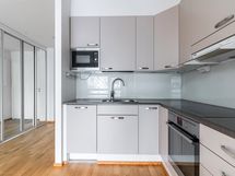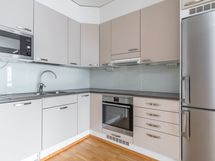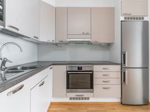 - Keittiön varusteet: Jääkaappipakastin, erillisuuni, mikroaaltouuni ja liesituuletin. Liesi: Keraaminen liesi. Työtason materiaali: Laminaatti.
