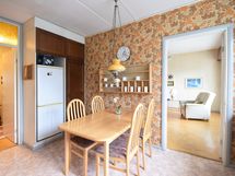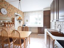 - Keittiön varusteet: Jääkaappipakastin ja astianpesukone. Liesi: Sähköhella. ruskeat kaapistot todennäk.-80-luvulla uusittu, liesi, liesikupu, jääkaappi/pakastin.