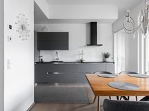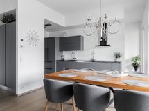 - Keittiön varusteet: Jääkaappi, erillinen pakastin, erillisuuni, liesi, liesituuletin, astianpesukone ja aamiaiskaappi. Liesi: Induktioliesi. Työtason materiaali: Kivi.