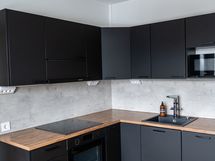 - Paljon kaappitilaa, Puutasot, Integroidut koneet, Induktioliesi, Jääkaappi