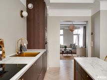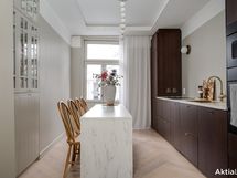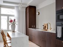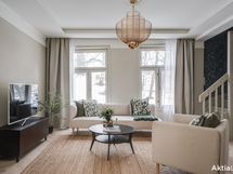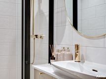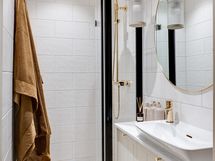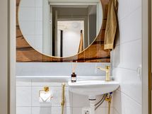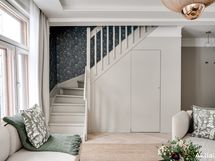 Koti on sisustukseltaan upea ja tarjoaa ylellisen tuntuman heti ensimmäiseltä askeleelta. 2024 toteutettu remontti on suunniteltu ja toteutettu pieteetillä pienempiä yksityiskohtia myöten. Yhtenäinen värimaailma tuo kotiin harmoniaa, jota kullatut yksityiskohdat piristävät, kuten vetimet, ovenkahvat, hana ja keittiön allas. Koko alakerran lattia on yhtenäistä vaaleaa tammiparkettia, jossa lattialämmitys. Kylpyhuoneen värimaailma on tyylikäs ja vastapäätä sijaitsevaan wc:hen tuo tunnelmaa hirsiseinä, joka on jätetty näkyviin lasiseinän taakse.