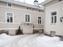 Idyllisellä Portsan alueella, Sairashuoneenkadun ja Puutarhakadun kulmassa on upea vanha hirsirunkoinen talo, joka seisoo kauniin luonnonkivijalan päällä.