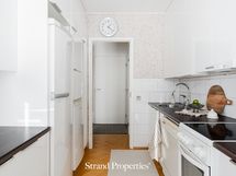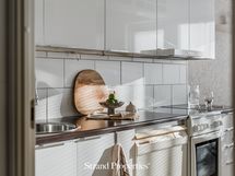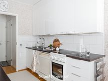 Varustus: keraaminen liesi kiertoilmauunilla, astianpesukone, liesituuletin (aktiivihiilisuodatin), jääkaappi, pakastin, mikro