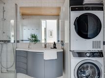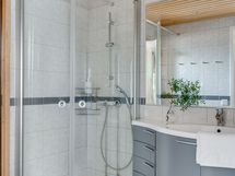 - Pesutilojen kuvaus: Varustelu: suihku, allas, allaskaappi, kaappi, pyykinpesukoneliitäntä (paikka pesutornille), peili, lattialämmitys (sähköllä).
