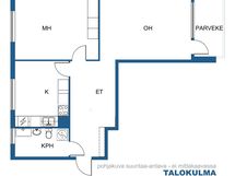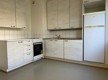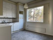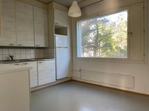 - Keittiön varusteet: Uuni ja jääkaappi. Keittiössä mukavasti kaappi- ja laskutilaa. Pöytä mahtuu ikkunan eteen.